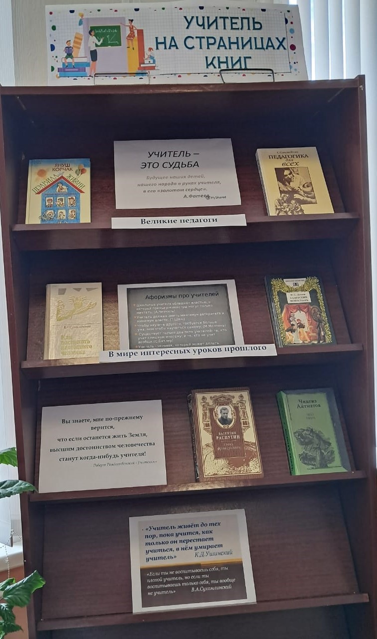 Центральная библиотека приглашает вас на выставку-обзор «Учитель на страницах книг». Здесь вы найдете произведения, которые ярко показывают образ учителя и погружают в атмосферу школьной жизни, где учитель играет центральную роль. Также представлена литература от выдающихся педагогов. Добро пожаловать!